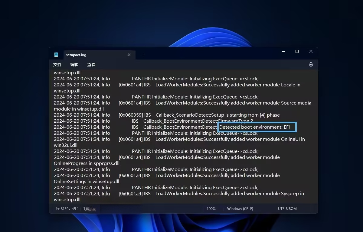 bcdedit بۇيرۇقى ئارقىلىق BIOS مودېلىنى تەكشۈرۈش3-ئۇسۇل: setupact.log خاتىرە ھۆججىتىنى تەكشۈرۈش
